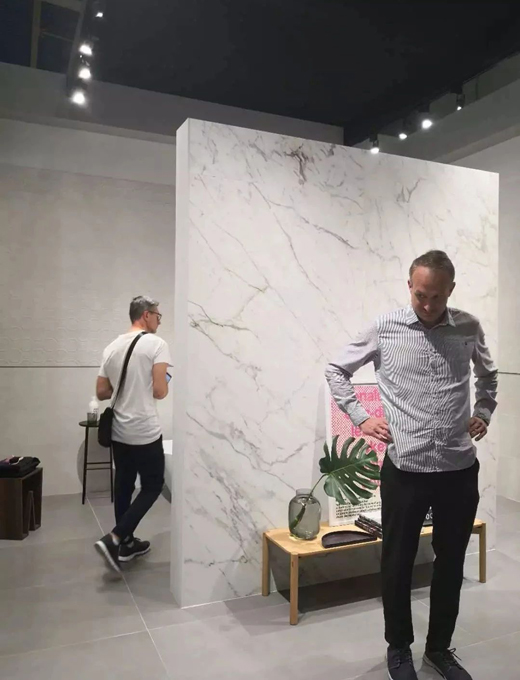 從花色上來(lái)看,除了大理石紋理,木紋面、水泥面、金屬面、砂巖面、水磨石面百花齊放;從表面工藝看,除了噴墨工藝,疊加干粒、噴釉、模具等多種工藝齊上;從應(yīng)用范圍看,除了傳統(tǒng)的上墻下地,櫥柜、洗手臺(tái)、餐桌、辦公臺(tái)面也逐漸開(kāi)始應(yīng)用。