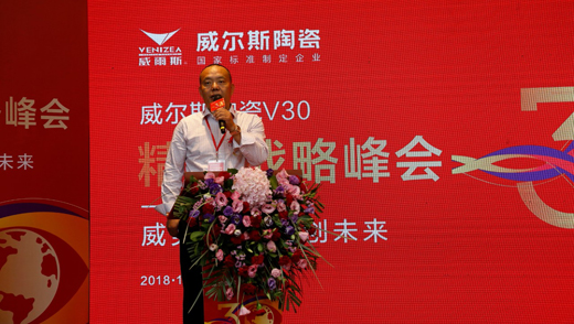 會上,品牌總經(jīng)理李基華回顧了威爾斯陶瓷自2016至2018年輝煌發(fā)展歷程。威爾斯以戰(zhàn)略性思維和開放的市場格局,在“產(chǎn)品升級、展廳升級、渠道升級、推廣升級、服務(wù)升級”五大升級發(fā)展戰(zhàn)略中全面布局、突飛猛進,取得了有目共睹的成績,邁上了“新時代,新起點,新未來”的偉大征程。同時,李總也希望各代表充分利用峰會平臺,更好地建言進策,讓更多客戶代表參與到品牌發(fā)展建設(shè)中。通過廠商共同合作,促進溝通及互聯(lián)互助,達到共同發(fā)展的結(jié)果。最后對品牌未來做了發(fā)展方針規(guī)劃及指導,威爾斯未來將深入規(guī)劃及有序的開展各項品牌建設(shè)工作。