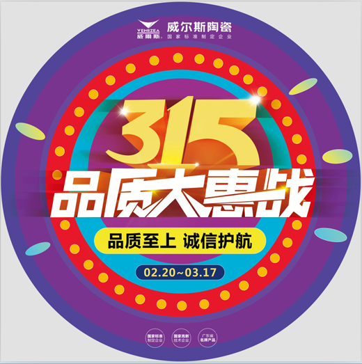 2月20日----3月17日,品質(zhì)至上,誠(chéng)信護(hù)航,全國(guó)威爾斯陶瓷旗艦店315“品質(zhì)大惠戰(zhàn)”隆重開(kāi)啟!