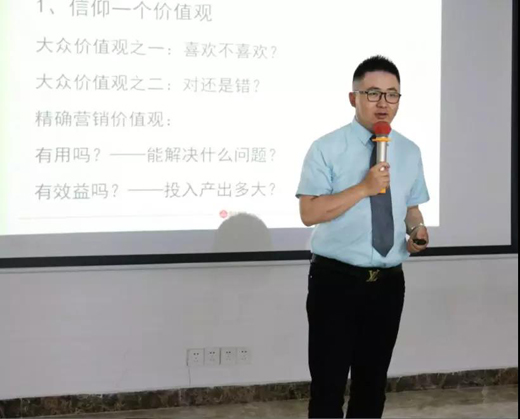 培訓(xùn)會議由德田陶瓷品牌總經(jīng)理吳黨華吳總主講,吳總認為,所謂精確營銷,就是通過給目標顧客一個不假思索選擇的理由,達到壟斷性的市場份額,從而實現(xiàn)持續(xù)盈利的策略選擇。