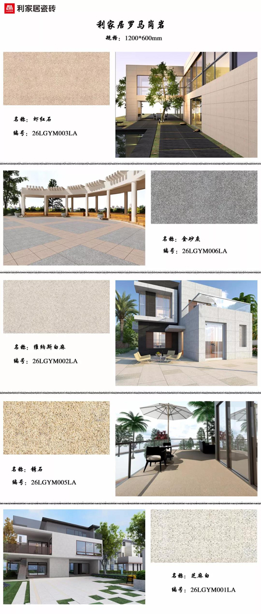 利家居羅馬崗巖應(yīng)用廣泛,不僅適用于室內(nèi),還可用于外墻、廣場、庭院、別墅露臺(tái)、游泳池、停車場等場所。