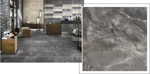 灰色,低調(diào)內(nèi)斂,具有大師格調(diào)的色彩,高貴優(yōu)雅、神秘而深邃,雅致的灰色為底色,搭配靈動(dòng)的白色紋理,細(xì)膩豐富的肌理層次,讓人驚嘆瓷磚藝術(shù)的精湛。