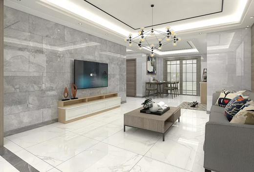 坯體越白,瓷磚會越有玉石的通透感,更顯整片磚的溫潤;濃淡相宜的灰色紋理不規(guī)則地分布于磚面,細膩而不張揚,在柔和的白色調(diào)襯托下,更顯優(yōu)雅自然。