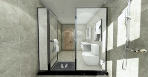 衛(wèi)生間光線通體良好,并且浴室柜、馬桶等衛(wèi)浴都是白色,地面則采用了薩米特深灰的磚精致-卡拉SF-QA612042,強(qiáng)烈的對比色增加了空間的視覺效果。