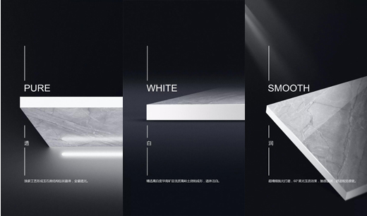 威爾斯原石為展現(xiàn)更加艷麗的花色,與適合人眼接受的產(chǎn)品,使用超白底坯,超精細(xì)拋光打磨,呈現(xiàn)60°柔光玉質(zhì)效果,觸感溫潤,讓家居視野更加舒適。