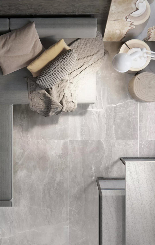 「巴黎」系列為一石多面,基調(diào)為淺灰色,白色紋理絲絲縷縷,看似零散,卻散而不亂,皆有章法,仿佛鋪開了在時光沉淀下的年輪。