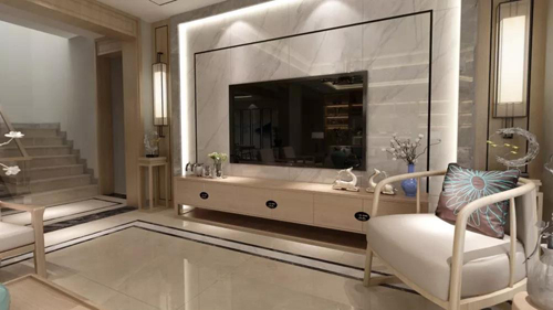 當(dāng)1200×2400mm愛琴海波浪白遇上中式挑空客廳,充分延伸了紋理的美感,更自然逼真,呈現(xiàn)出渾然天成的藝術(shù)遐想。