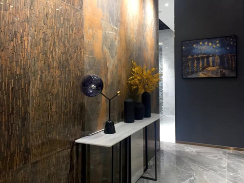 它的尺寸為600x1200mm,適用于星級酒店、高檔會所、展廳、藝術館等公共空間,以及別墅、復式、大平層等大戶型空間。
