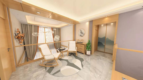 大量的原木素色和清晰的原木紋理,使整個(gè)空間都透著樸素,雅致的氣息,展現(xiàn)出一種禪意的空靈意境,讓人感受到禪意的空明和澄凈。