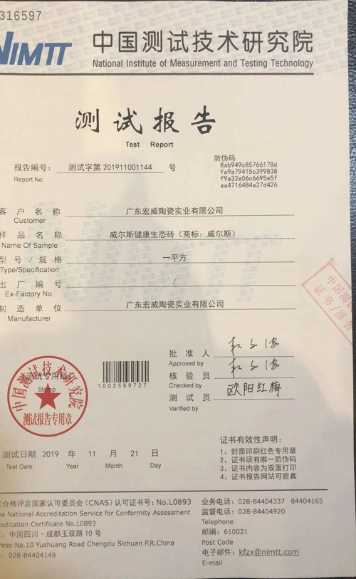 2、威爾斯健康生態(tài)磚使用特殊物質(zhì)(HC料),沒有放射性,不含任何放射性元素。
