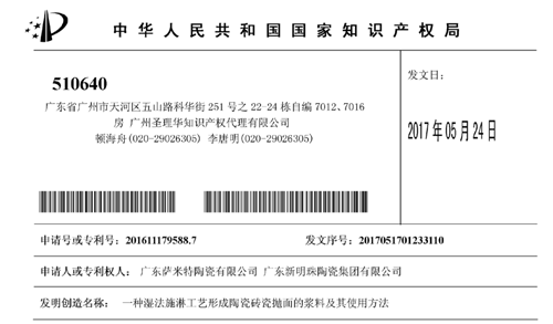香榭原石3.0瓷拋技術(shù)專利證書