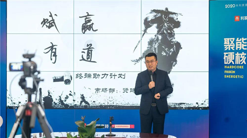 集團市場中心推廣主管賢琦華進行《賦贏有道—終端助力計劃》主題演講。他從多維度剖析2020年的新營銷模式,線上線下相結(jié)合,多元化發(fā)展,采用“線上直播、終端賦能”等新營銷手段。