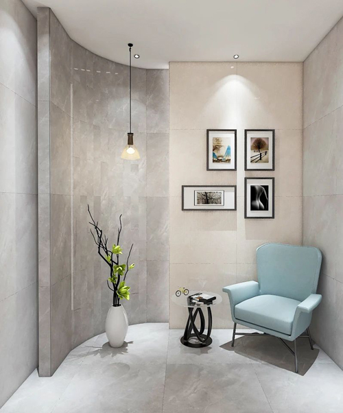 梵高「克利希」是一款極為簡潔的高級灰瓷磚,紋理若隱若現(xiàn),干凈、柔和,當(dāng)它“撞色”接近大地色調(diào)的墻身,再搭配暖調(diào)的布藝沙發(fā),能為空間帶來滿滿的舒適感。