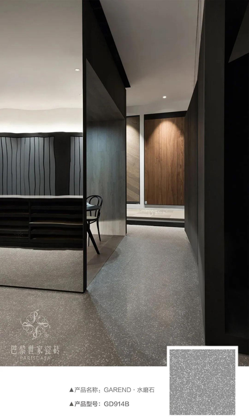 在極簡的黑色魅影中,如璀璨星河的水磨石,給人無窮無盡的想象力,形成對比,自由變化、隨性自在,時尚的氣息流轉(zhuǎn),水磨石斑駁陸離的紋理,點綴著完美的視覺空間。