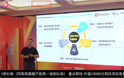 5月26日19:00,利家居瓷磚強(qiáng)勢(shì)開啟“利商行動(dòng)———0成本0距離 一帶一城標(biāo)桿打造”線上直播招商會(huì),直播間專享4大特權(quán),人氣聚集,直播觀看人數(shù)突破16萬(wàn),遠(yuǎn)程簽約加盟的客戶數(shù)據(jù)不斷更新,這些新簽約的利家居家人們將獲得利家居的重點(diǎn)幫扶。