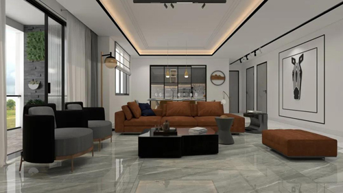 客廳選用白色與棕色系的家具,令空間細節(jié)更飽滿。金屬質感的燈具,點綴著空間,配以優(yōu)雅高貴的灰調陶瓷大板, 成就不一樣的品質家居。
