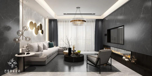 穩(wěn)重、深邃的深灰色調,高貴、隱約的紋理,彰顯一種永恒與穩(wěn)定,靜謐中飽含著力量,如同等待著黑夜的一束亮光,讓人充滿期待與希望,讓躁動的心靈沉靜下來。如此深刻人心的尊貴氣息,賦予空間靜寂的高級感。