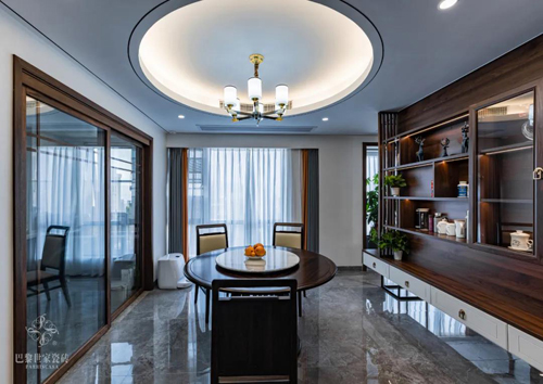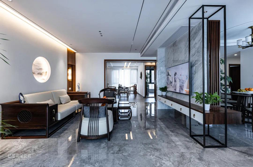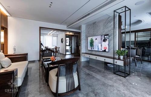 以高級(jí)塑造獨(dú)一無二的中式灰調(diào),深木色家具滲透著東方特有的氣息,地面鋪設(shè)細(xì)膩通透的大理石紋理,添置如同水墨般的自由隨性。