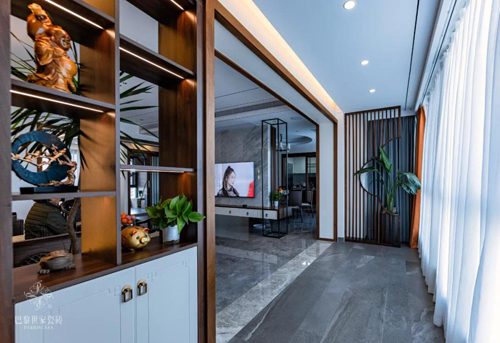 本案例將東方文化與現(xiàn)代簡約相結(jié)合,醞釀出獨(dú)特的新中式美學(xué)風(fēng)格,傳統(tǒng)中式的韻味與現(xiàn)代元素的時(shí)尚性相糅合,和諧、平穩(wěn)地在空間流淌出新中式的意蘊(yùn),巴黎世家柔光瓷磚的溫潤柔和,增添幾分藝術(shù)碰撞后的從容。