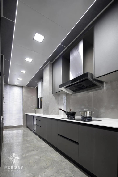 高級(jí)灰調(diào)的廚房空間,同一色系不同明度的變化,看起來滿滿高級(jí)感,讓日常生活不顯得充滿煙火,反而帶來活色生香的精致。