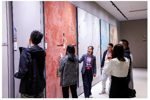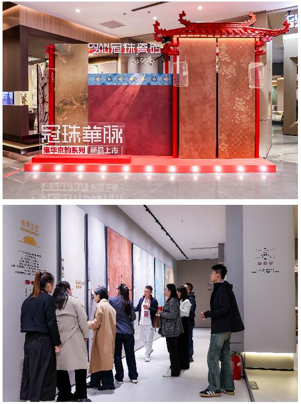 隨后,嘉賓們走進(jìn)北京冠珠旗艦店進(jìn)行參觀,近距離感受冠珠瓷磚豐富的產(chǎn)品矩陣和美學(xué)應(yīng)用。其中,冠珠華脈「雍華京韻」巖板的質(zhì)感體驗(yàn)和藝術(shù)表達(dá)不斷刷新嘉賓們對高端定制空間的認(rèn)知,贏得了大家的一致好評和高度認(rèn)可。