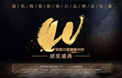 10月15日,由中國(guó)建筑陶瓷“40年40品牌”評(píng)選活動(dòng)組委會(huì)、中國(guó)室內(nèi)裝飾協(xié)會(huì)、裝飾材料用品專業(yè)委員會(huì)、華夏陶瓷網(wǎng)等共同舉辦的建筑陶瓷影響力品牌論壇暨“40年40品牌”頒獎(jiǎng)盛典隆重舉行,以檢視“改革開(kāi)放40年”中國(guó)建筑陶瓷行業(yè)發(fā)展的光輝業(yè)績(jī)。