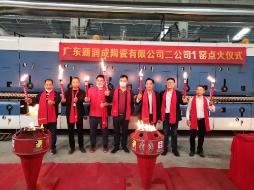 2020年3月29日早上11點,在鞭炮聲下,在新潤成企業(yè)崇北基地,廣東新潤成陶瓷有限公司董事長關潤淡、廣東中鵬熱能科技有限公司董事長萬鵬、廣東新潤成陶瓷有限公司總經(jīng)理關偉洪、廣東新潤成陶瓷有限公司新潤成戰(zhàn)略發(fā)展中心總經(jīng)理關偉鏗、廣東中鵬熱能科技有限公司副總經(jīng)理宋旭、廣東新潤成陶瓷有限公司二公司公司經(jīng)理梁耀聯(lián),各車間主任級以上管理人員及相關外單位工程隊共同完成全新1#寬體窯點火儀式。
