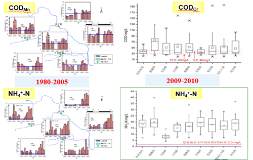 治河如治病,開展河流形態(tài)、水質(zhì)、水文和生態(tài)的綜合診斷,是河流水質(zhì)改善開展的首要步驟。以史為鑒,分析溫榆河30年水質(zhì)的時(shí)空演變。課題組結(jié)合現(xiàn)場(chǎng)采樣調(diào)研,系統(tǒng)分析了1980-2010年溫榆河的COD、氨氮變化,30年來溫榆河呈現(xiàn)以氨氮為主導(dǎo)的水污染特征,且通過時(shí)間序列模型進(jìn)行預(yù)測(cè),到2015年,溫榆河水質(zhì)仍不能達(dá)到功能區(qū)劃要求。