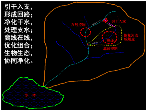 該技術(shù)基于“干流生態(tài)治理與恢復(fù)始于支流,因地制宜”的原則,通過工程措施將一部分干流中的污染河水引入支流,利用支流、已有/廢棄坑塘等開展污染河水的生物、生態(tài)凈化技術(shù)研究,可系統(tǒng)集成在線、離線河流水質(zhì)凈化技術(shù)的優(yōu)點(diǎn)。
