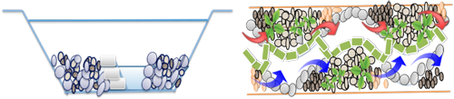 濕地技術(shù)研發(fā)要點(diǎn):①植物優(yōu)選:通過在季節(jié)性、基質(zhì)適應(yīng)性、抑藻能力、根系發(fā)達(dá)程度、死亡二次污染等方面進(jìn)行考察,蘆葦均優(yōu)于香蒲。②填料優(yōu)選:脫氮填料沸石最優(yōu);除磷填料鋼渣最優(yōu),還開發(fā)了新的除磷材料-鎂橄欖石。③結(jié)構(gòu)優(yōu)化:采用間歇流運(yùn)行、上部垂直流、下部水平流的耦合工藝。同時(shí)考察了人工濕地的病毒去除效果,在0.2 m/d水力負(fù)荷下,連續(xù)水平、連續(xù)垂直、間歇水平、間歇垂直對(duì)f2噬菌體對(duì)數(shù)去除率依次為1.25、1.79、0.39和0.56 log pfu/ml,去除率分別為91.02%、97.09%、51.22%和65.24%。表明濕地連續(xù)運(yùn)行優(yōu)于間歇運(yùn)行;垂直潛流優(yōu)于水平潛流。