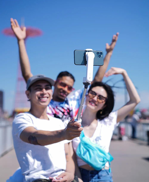 ★ SMOOTH-XS | 作品SMOOTH-X的“姐妹款”手機(jī)云臺(tái),SMOOTH-XS進(jìn)一步極簡(jiǎn)從收納展開至拍攝的操作步驟,滑一下,即可開拍。260mm延長(zhǎng)桿設(shè)計(jì)及自動(dòng)美顏功能,無(wú)論是一個(gè)人的自拍或與好友 / 姐妹淘的聚會(huì)合照,都能給予你更美更全面的拍攝視角。