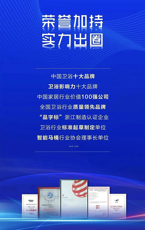 同時還獲得了“中國節(jié)水產(chǎn)品認(rèn)證”“綠色環(huán)保企業(yè)認(rèn)證”,并先后被評為“全國質(zhì)量、信譽雙保障示范單位”、“全國消費者用戶滿意企業(yè)”、“中國衛(wèi)浴十大品牌”等榮譽稱號。