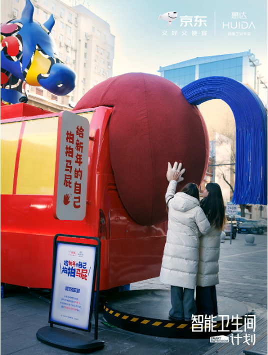 除了硬件設(shè)施的升級,游客在使用智能衛(wèi)生間時,還可參與“京東廁評人”活動分享使用感受,即有機會贏取花灑、馬桶趣味對聯(lián)、京豆等禮品。衛(wèi)生間后方設(shè)有“幸運馬屁”互動裝置,輕拍即可獲取新年好運卡,讓如廁過程也成為一段輕松趣味的體驗。