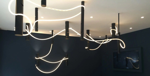 當(dāng)中,自由纏繞的黑白柔性線光是由Pallavi Dean 設(shè)計的Interweave,一個靈活的系統(tǒng),能讓每個人都可以根據(jù)自己的心情和居住空間自由創(chuàng)作。“我希望用戶成為他們居住空間的‘作者’。 ”Pallavi Dean說。