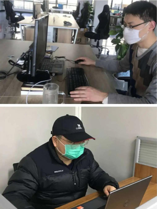 馮紫楠(圖1右)在進行前端開發(fā)任務(wù)的同時,統(tǒng)籌規(guī)劃辦公場所消毒、員工午餐安排、防疫物資整理與發(fā)放。秦贊(圖1左)在測試資源緊張時,學(xué)習(xí)測試腳本編寫,接手云端接口測試任務(wù),同時每天對已到崗員工進行體溫登記,確保復(fù)工人員健康。