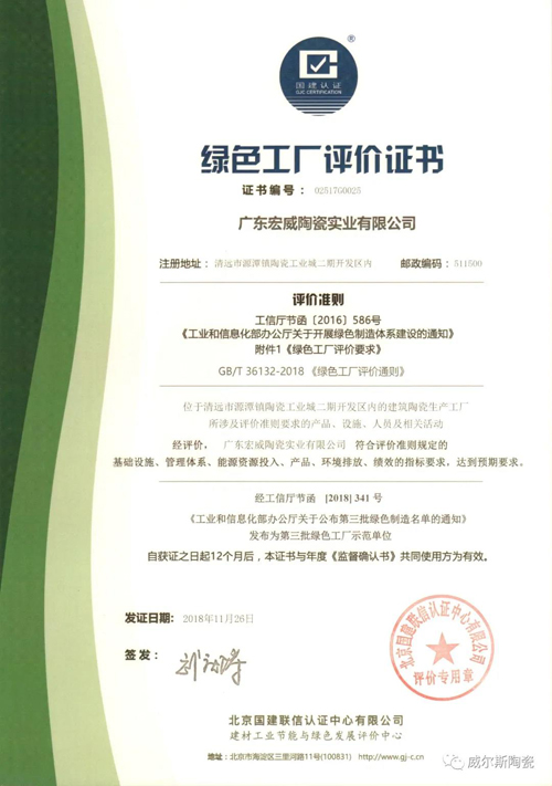 6月12日,威爾斯陶瓷生產(chǎn)基地廣東宏威陶瓷實(shí)業(yè)有限公司順利通過清潔生產(chǎn)審核驗(yàn)收。威爾斯陶瓷在提高節(jié)能環(huán)保效益、減少能源消耗方面的努力和工作成效獲得了政府部門的肯定。