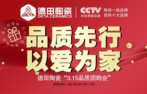 3.15作為新年過(guò)后的第一個(gè)促銷節(jié)點(diǎn),德田陶瓷《品質(zhì)先行 以愛為家》活動(dòng)盛大開啟,五重豪華禮,助力客戶開啟美好新生活,開門第一紅,品質(zhì)團(tuán)購(gòu)會(huì),致敬315,鉅惠全城。