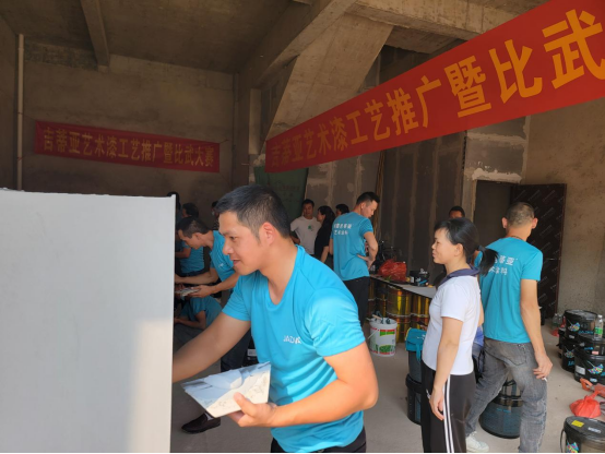 以賽促技,以技促能。為加強(qiáng)行業(yè)交流與合作,提升施工技術(shù)水平,10月26日,吉蒂亞藝術(shù)涂料在廣西玉林舉辦了品牌推廣暨工藝比武大賽。此次工藝比武大賽歷時(shí)3天,參與比賽的工藝師近七十余位,通過(guò)“四大涂刷維度”的綜合評(píng)分,最終選出冠亞季軍,并對(duì)其頒發(fā)豐厚獎(jiǎng)勵(lì)。