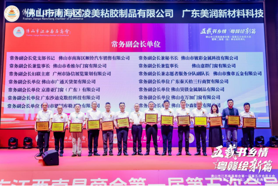 2025年5月28日,佛山南海雅匯悅豪酒店星光璀璨,佛山市江西南昌商會(huì)第一屆第五次會(huì)員大會(huì)暨第二屆理(監(jiān))事會(huì)就職典禮在此隆重舉行。本次大會(huì)以“五載書鄉(xiāng)情·粵贛繪新篇”為主題,匯聚政商精英、行業(yè)領(lǐng)袖共話發(fā)展藍(lán)圖。
