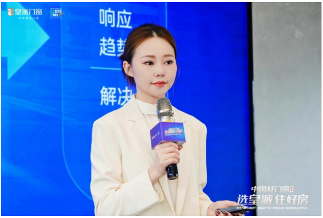 皇派門窗副總裁朱夢思在主題演講中系統(tǒng)闡釋了「好門窗6S全能系統(tǒng)標(biāo)準(zhǔn)」的戰(zhàn)略內(nèi)涵。她指出,好房子需以“好門窗為骨,好生活為魂,好服務(wù)為脈”,真正推動中國人從“有房住”到“住得好”的歷史跨越。該標(biāo)準(zhǔn)從安全、綠色、舒適、智慧四大特征出發(fā),通過超隔音、超安全、超低碳、超智能、超舒適、超省心六大維度,系統(tǒng)構(gòu)建門窗全能體系,切實破解居住痛點,持續(xù)提升住宅品質(zhì),為消費者打造更具幸福感的人居體驗。