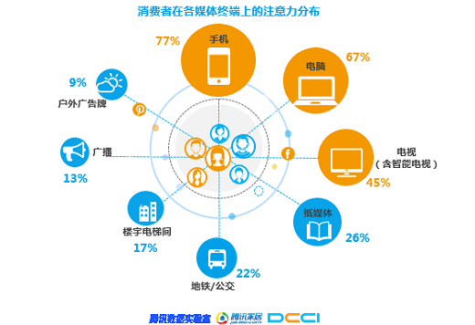 分析家居家裝消費(fèi)者在各媒體終端上的注意力分布,手機(jī)成為吸引消費(fèi)者最多注意力的終端設(shè)備。