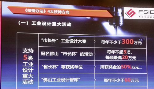 此外,2019年10月-11月,佛山市人民政府先后發(fā)布了三份政策文件,佛山市級財政每年將安排專項扶持資金不少于2000萬元,用于對推進工業(yè)設計發(fā)展的4類事項提供資金扶持。