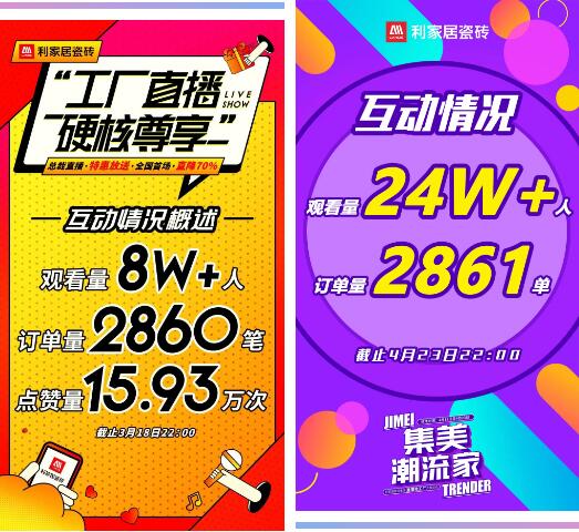 除此之外,疫情期間,利家居依托天貓、微信等平臺開展線上直播、裂變等活動,微信裂變累計30萬+的品牌曝光和用戶圍觀,可見品牌終端影響力與口碑。