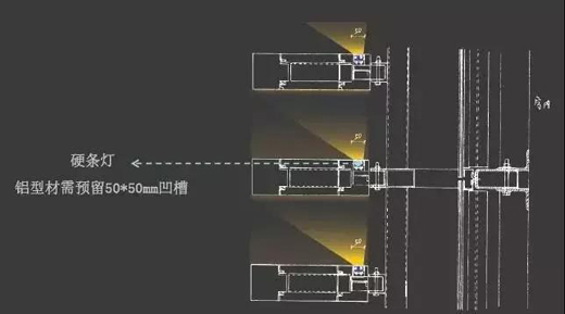 設(shè)計(jì)難點(diǎn):裙樓原建筑結(jié)構(gòu)是獨(dú)特的格柵造型,常見(jiàn)的打光方式都是把燈具直接嵌在格柵外立面,裸露的燈具不僅造成了極大的光污染,而且效果極不理想,對(duì)此,我們?cè)谠O(shè)計(jì)時(shí)使用了一種創(chuàng)新的布燈方式。