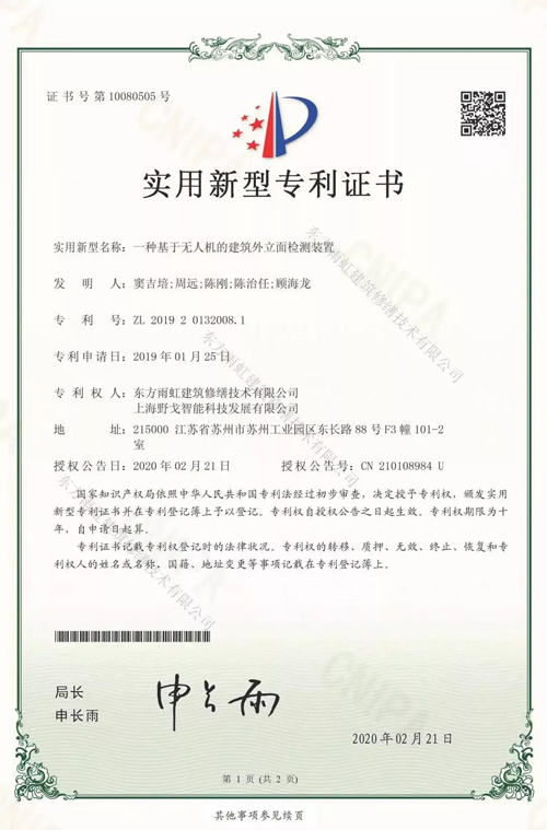 2020年3月,北京市住建委與東方雨虹(ORIENTAL YUHONG)建筑修繕簽署關(guān)于“建筑防水與外墻飾面檢測(cè)評(píng)估智能診斷系統(tǒng)應(yīng)用研究”項(xiàng)目的技術(shù)開發(fā),包括對(duì)檢測(cè)評(píng)估智能診斷系統(tǒng)的完善,項(xiàng)目現(xiàn)場(chǎng)勘測(cè)、檢測(cè)診斷,檢測(cè)數(shù)據(jù)整理與分析等,工程應(yīng)用,檢測(cè)評(píng)估診斷技術(shù)總結(jié)在內(nèi)的五個(gè)維度的測(cè)試與研發(fā),逐步完善升級(jí)建筑勘測(cè)設(shè)備的使用功能及應(yīng)用場(chǎng)景,推動(dòng)舊城改造精準(zhǔn)落地,攻克建筑修繕的難題,提升項(xiàng)目實(shí)施成果。