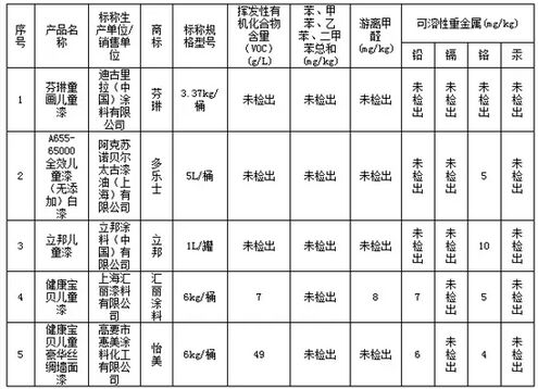 試驗(yàn)圖表中5件“兒童漆”產(chǎn)品樣品,檢測(cè)數(shù)據(jù)均符合國(guó)家相關(guān)標(biāo)準(zhǔn),但其中個(gè)別產(chǎn)品VOC指標(biāo)低于“兒童水性內(nèi)墻涂料”團(tuán)體標(biāo)準(zhǔn)。