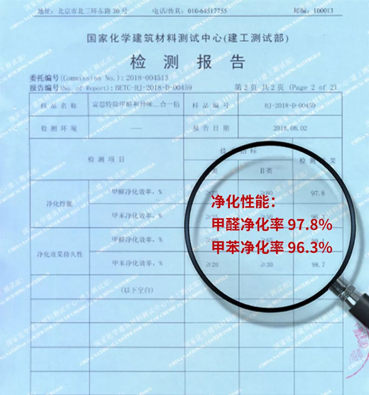 科技創(chuàng)新,永無止境。由國家化學(xué)建筑材料測試中心出示的檢測報(bào)告顯示,富思特花凈語空氣凈化魔花(檢測品名:富思特除甲醛和異味二合一氈)的甲醛凈化效率高達(dá)97.8%,甲苯的凈化效率為96.3%,檢測結(jié)果逼近極值,分別高于I類國家標(biāo)準(zhǔn)30.4%和175%,富思特博士后科研團(tuán)隊(duì)再次用實(shí)力展示出空氣治理的新“凈”界、新高度。