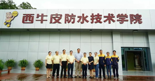 中國建筑防水協(xié)會(huì)考察團(tuán)一行與公司領(lǐng)導(dǎo)在西牛皮防水技術(shù)學(xué)院合影
