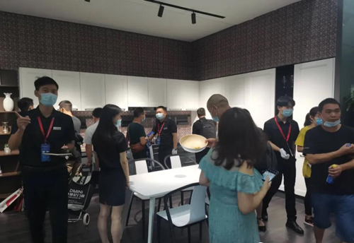 疫情影響,也不減人們對于廣州建博會的熱情;大牌齊聚,也阻擋不了卡利亞散發(fā)的光芒。直擊展廳現(xiàn)場,在展位門口就可以看到絡(luò)繹不絕的人頭攢動,有的俯身仔細端詳,仿佛想望穿這不銹鋼臺面,一探里面的究竟;有的仰頭伸手觸碰,擺弄上柜的升降調(diào)味籃;有的駐足跟前欣賞產(chǎn)品細節(jié),研究討論。思想萬千,狀態(tài)各異,但都沉浸在全鋼的獨特魅力中。