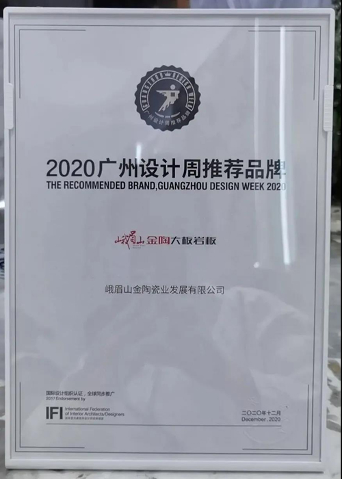 自2020廣州設(shè)計(jì)周開展以來,全國優(yōu)秀設(shè)計(jì)師、經(jīng)銷商、材料商與眾多媒體記者紛紛前來金陶巖板展位打卡,現(xiàn)場人氣火爆。而且峨眉山金陶瓷業(yè)首次參加廣州設(shè)計(jì)周,便獲得“2020廣州設(shè)計(jì)周推薦品牌”殊榮。